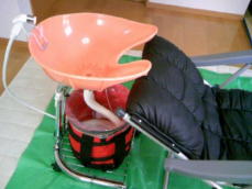 ★シャンプーってどうするの? ![]() ベッド上の場合はこのタイプではない専用のシャンプーセットを持参して行います。また、ご利用者さまのご要望で「立ったまま、台所で洗ってほしい」「風呂場でやりたい」等のお声が多々ございますので、出来る限りご要望にお答えいたします。介護福祉士の観点から考えた場合、寝たきりさん以外は一部介助する事で、お風呂場で洗う方法が大変好評です。この点はお電話でご説明いたします。 |